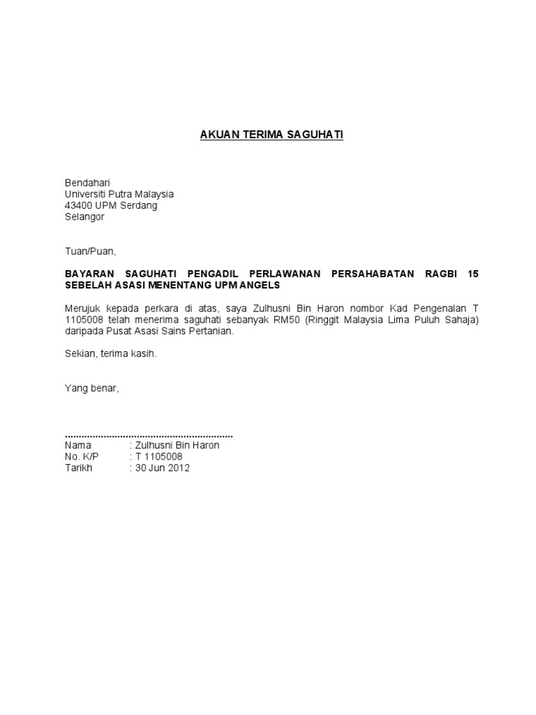 | Judul: Contoh Surat Akuan Terima Wang Contoh Surat |